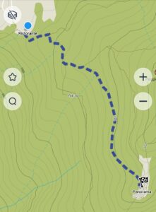 La partenza del secondo sentiero è esattamente sotto il ristorante Gigliola. Per percorrerlo sono necessarie le scarpe da trekking in quanto in alcuni punti è dissestato.