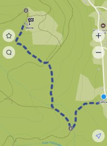 Da qui inizia una camminata di circa mezz’ora, tutta nel bosco e in salita. All’inizio troverete dei cartelli, ma poi la segnaletica si fa un po’ confusa: noi abbiamo dovuto affidarci a Maps.me per non sbagliare direzione, ed è un’app che vi consiglio di scaricare perché le mappe funzionano benissimo anche offline quando non c’è connessione internet, cosa che sui sentieri capita spesso.